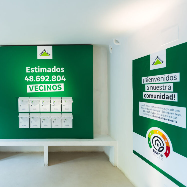 Una rueda de prensa de bajo impacto medioambiental. El evento se realizó íntegramente en materiales sostenibles 100% reciclables, para presentar a medios de comunicación del nuevo sello Home Index. Hicimos un showroom de productos inspirándonos en el concepto creativo del spot “Somos Vecinos”. De esta forma, recreamos una comunidad de vecinos con todo tipo de perfiles: el deco lover, el ahorrador energético, el del invernadero en el balcón, la manitas, los que están de reforma… con el fin de demonstrar que Leroy Merlin tiene una solución sostenible para cada tipo de persona.